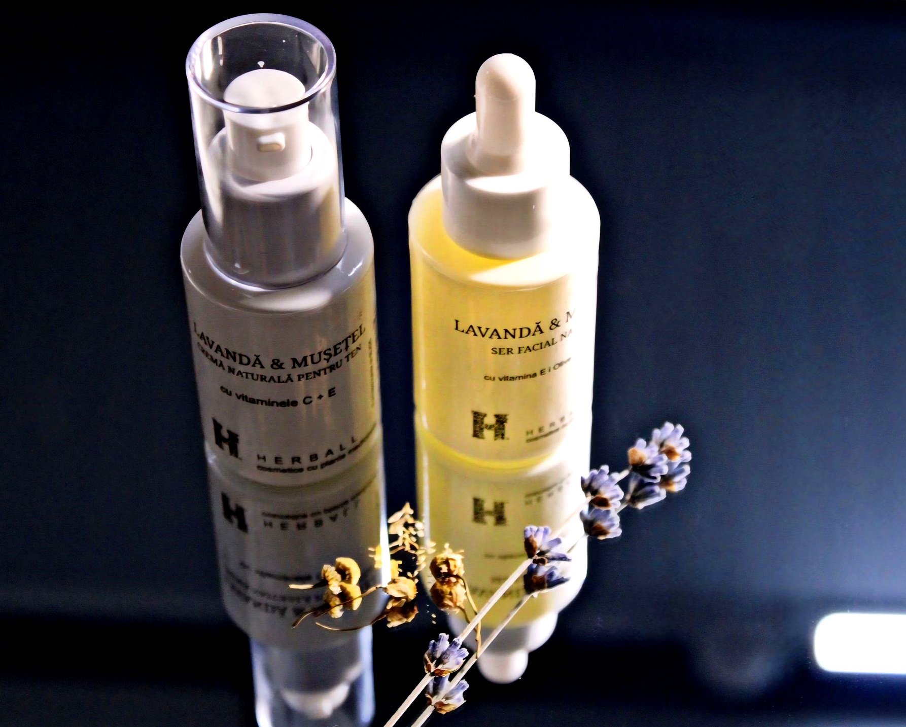 Recomandăm serului facial împreună cu apa florală pură de lavandă HERBALL și crema naturală HERBALL cu lavandă, mușețel, vitaminele C și E, pentru o completare a întreținerii tenului și decolteului, astfel: